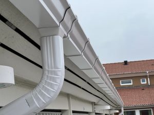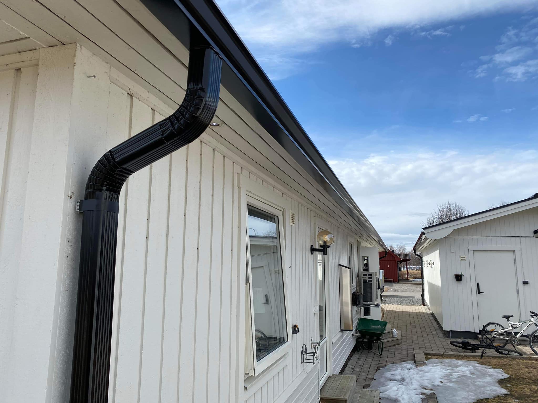 Våra hängrännor produceras på plats hos dig i vår mobila produktionsanläggning. Det betyder att hängrännorna anpassas för att passa just ditt hus. Vi gör hela jobbet åt dig, monterat och klart!